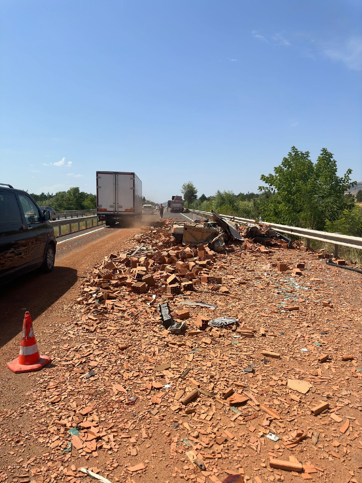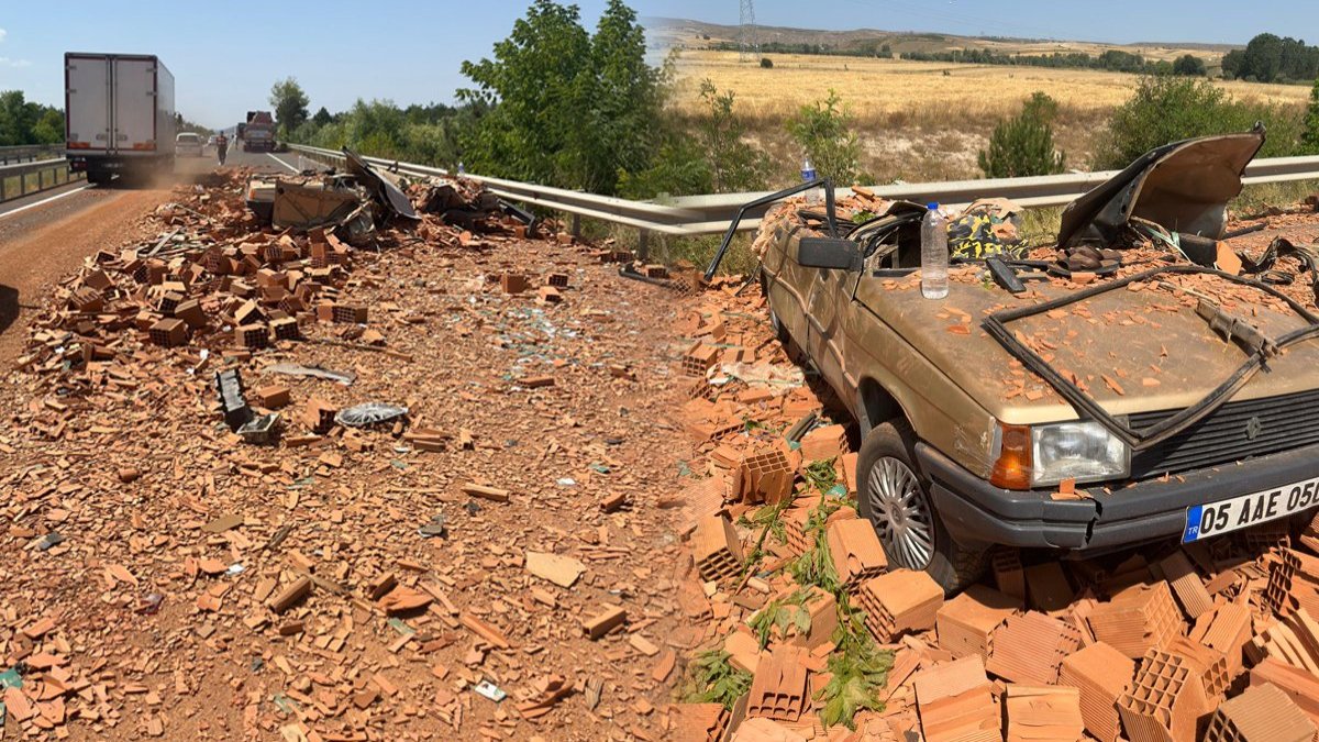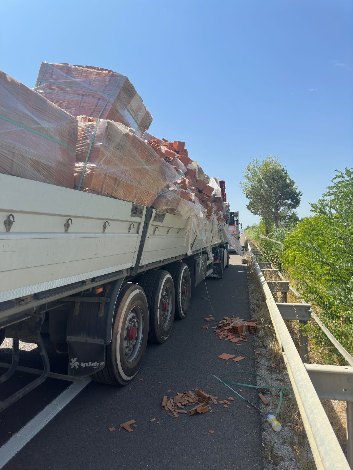 x"Yola saçılan tuğla parçaları, Karayolları ekipleri tarafından temizlendikten sonra trafik tekrar normale döndü.