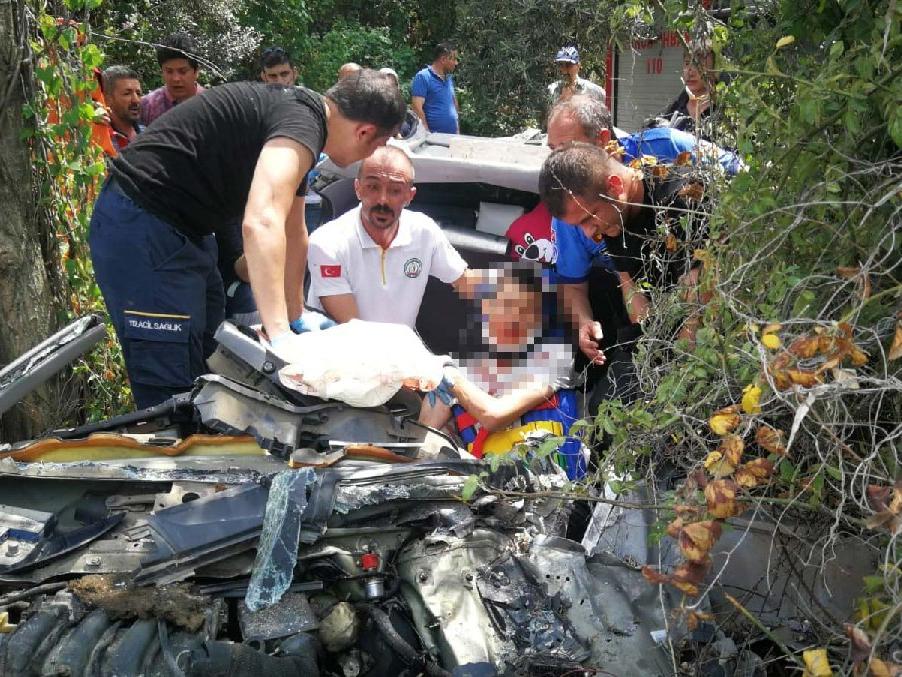 Bursa'nın İznik ilçesinde tırla kafa kafaya çarpışan otomobilde can pazarı yaşandı. Otomobil içerisinde sıkışan sürücü ve yanındaki bir kişiyi itfaiye ekipleri kurtardı.