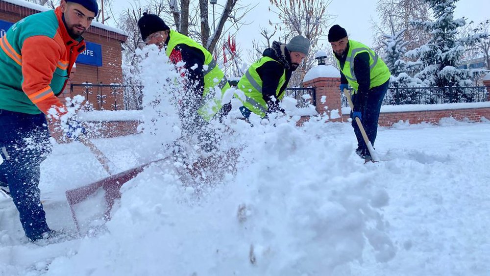 Cadde ve sokakların karla kaplandığı kentte, Karayolları, İl Özel İdaresi ve belediye ekipleri çalışması başlattı.