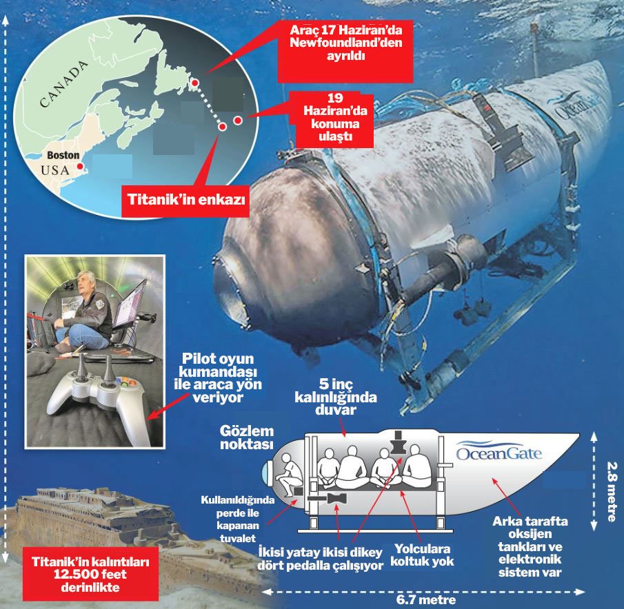 Yetkililer okyanusun derinliğindeki araçta oksijenin bitmiş olma ihtimalinin büyük olduğunu açıklarken, karbondioksit seviyesinin artmasının araç içerisinde uyuşturucu etkisi yaratabileceği belirtildi. Uzmanlar, araç içerisindeki elektrik düzeneği dolayısıyla karbondioksit seviyelerinin çok yükseleceğini belirtti.