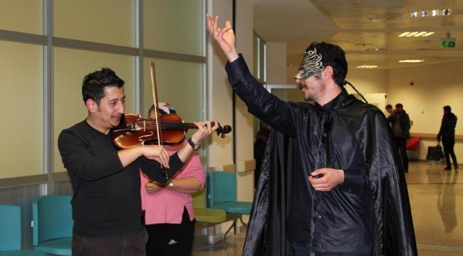 Maskeli tiyatro oyuncusu keman dinletisi eşliğinde verem hastalığıyla ilgili bilgiler verdi. Oyuncu yaklaşık 10 dakika süren gösterisi boyunca, veremin ölümcül bir hastalık olmadığını tedavisinin mümkün ve ücretsiz olduğunu, utanılacak bir hastalık olmadığını belirterek bu hastalıktan korunmanın yollarını anlattı.