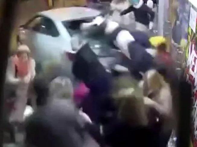Çevredeki güvenlik kamerası tarafından anbean kaydedilen kaza anına ait görüntülerde ise, aracın geri geri hızla kaldırımdakilerin arasına daldığı ve tiyatronun içerisine daldığı görüldü.