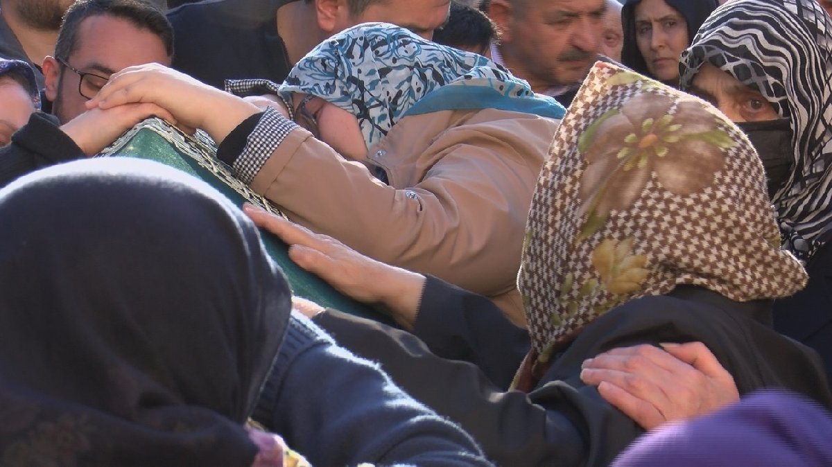 Baba Selahattin Topçu'nun ayakta durmakta güçlük çektiği görüldü. Anne Ayşe Topçu, eşi Nihal Topçu ile kızları Aleyna ve Ebru Topçu da, tabuta sarılarak gözyaşı döktü.