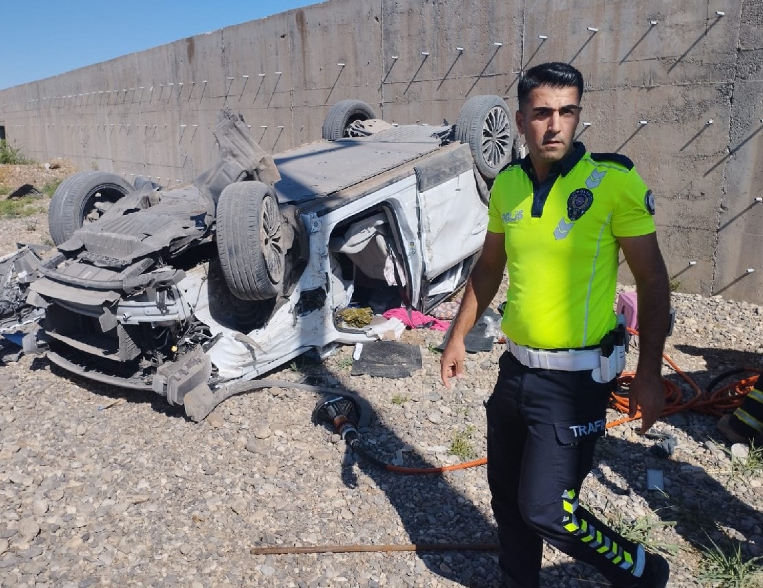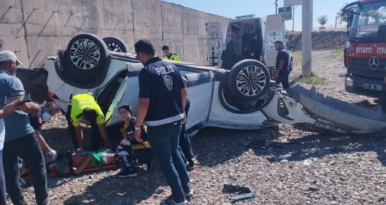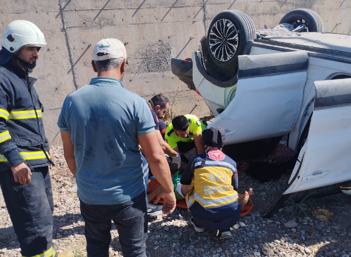 Ters dönen otomobildeki H.K. (45), G.K. (45), E.R.K. (13), E.A.K. (12) ve A.N.K. (6) yaralandı. İhbarla olay yerine polis, itfaiye ve sağlık ekipleri sevk edildi. Bismil itfaiyesinin müdahalesiyle yaralılar sıkıştıkları yerden çıkarıldı.