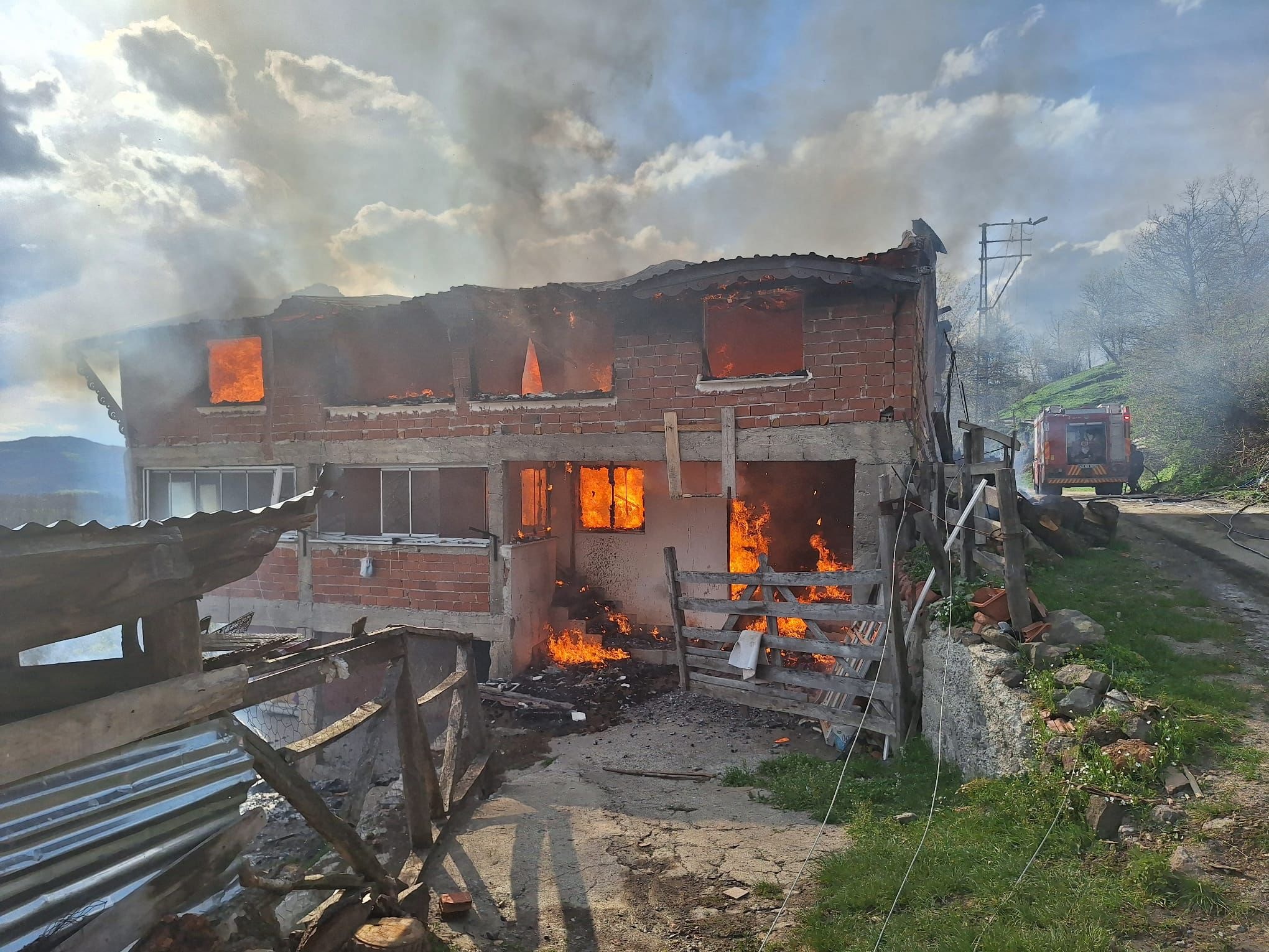 İlçeye bağlı Akgüney köyünde Veli Yıldırım'a ait iki katlı evde henüz belirlenemeyen nedenle yangın çıktı.