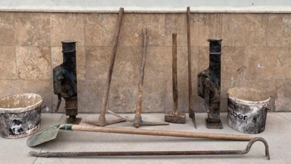 Şüphelilerin kazıda kullandıkları malzemelere de el konuldu. (AA)