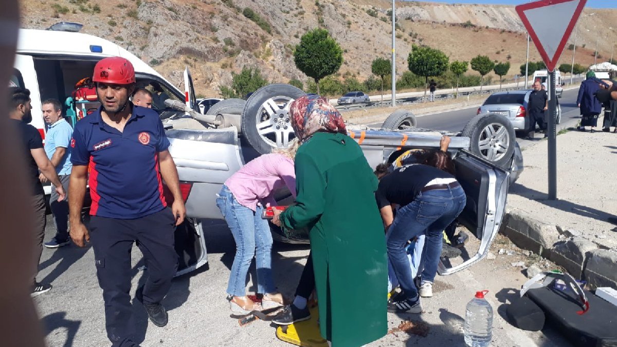 Çarpmanın etkisiyle ters dönen otomobilde bulunan aynı aileden 3'ü çocuk 5 kişi yaralandı. Çevrede bulunan vatandaşların durumu 112 Acil Çağrı Merkezine bildirmesi üzerine kaza yerine çok sayıda sağlık, polis ve itfaiye ekibi sevk edildi.