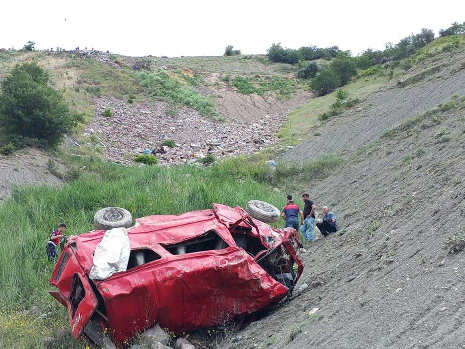 Tokat’ın Reşadiye ilçesine bağlı Çamlıkaya köyünde bir minibüs şarampole devrildi.