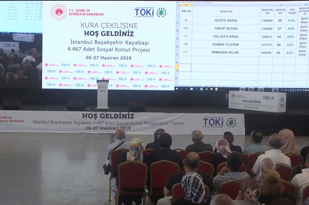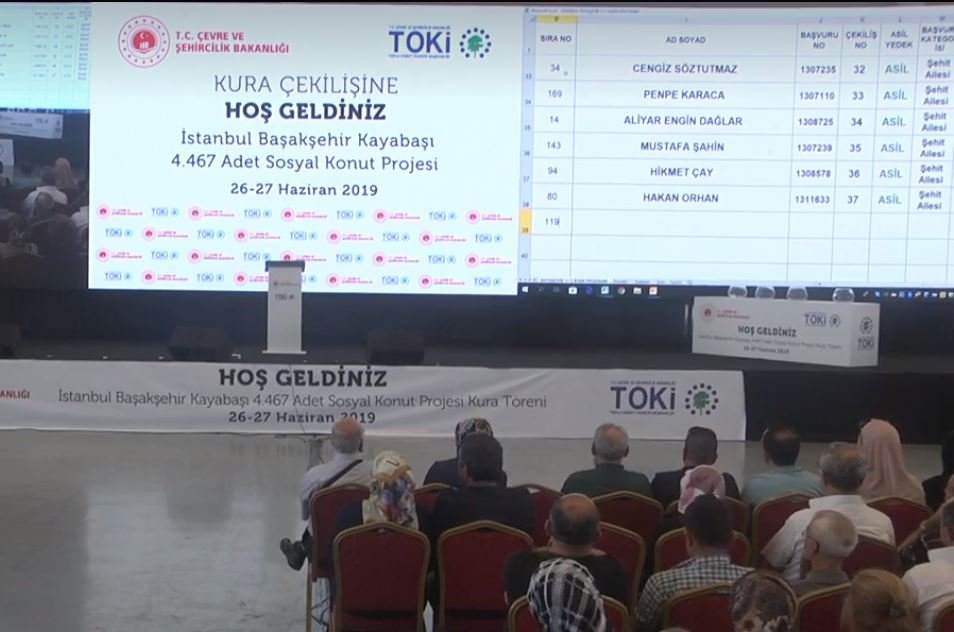 Yüzbinlerce aile tarafından merakla beklenen kura töreninde, 26 Haziran Çarşamba günü Başakşehir Kayabaşı projesinde yer alan 2+1 nitelikli 2 bin 338 konutun sahibi belli oldu.Kazanan ev sahipleri büyük sevinç yaşarken, beklediği sonucu elde edemeyen vatandaşlar ise salondan üzüntü ile ayrıldı.