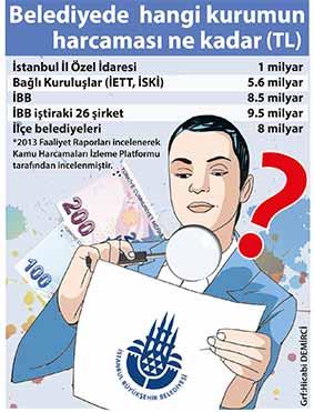 Belediyecelik faaliyetlerini şirketler üzerinden kurduğu bir sistemle yürüten İstanbul Büyükşehir Belediyesi (İBB), 26 iştiraki ile denetlenemeyen bir yapıya dönüştü. Belediyecilik hizmetlerinin yarı ticari ve kâr oranı yüksek şirketler eliyle yürütülmesi belediyecilik faaliyetlerinin kamusal karakterini zayıflatıyor, ticari belediyecilik anlayışı güçleniyor. Kadir Topbaş’ın Başkanlığındaki İstanbul Büyükşehir Belediyesi’ ve bağlı kuruluşların faaliyet raporları incelendiğinde en fazla harcamanın 9.5 milyar lira ile aralarında İstanbul Ağaç ve Peyzaş AŞ., İGDAŞ, BELTUR, BİMTAŞ, İSPARK’ın da bulunduğu 26 iştirake ait olduğu görülüyor. İBB’nin 2013 yılı harcaması ise 8.5 milyar TL olurken, bağlı kuruluşlar olan İETT ve İSKİ’nin yıllık harcaması 5.6 milyar lirayı buluyor.
