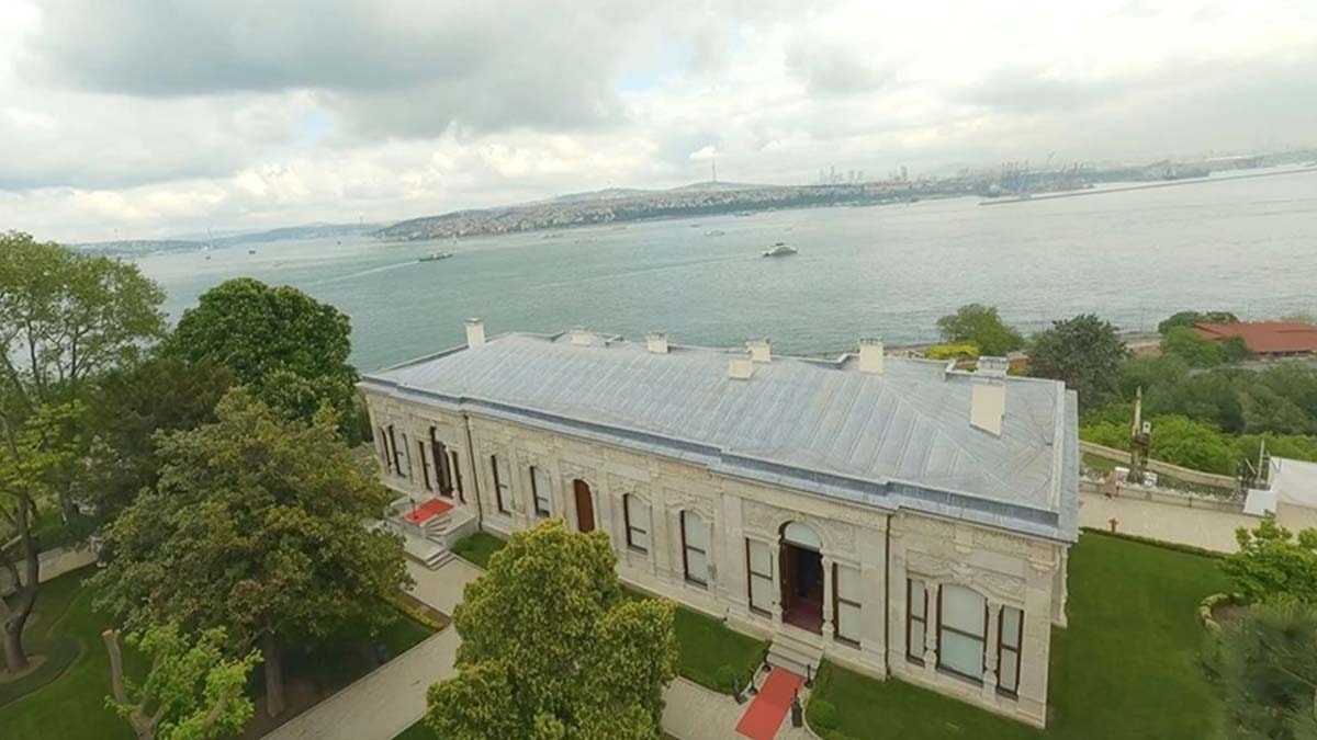 FPV dronun Saray'ın avlusunda süzülerek kaydettiği görüntülere, köşk ile panoramik Boğaz manzarası da yansıdı.