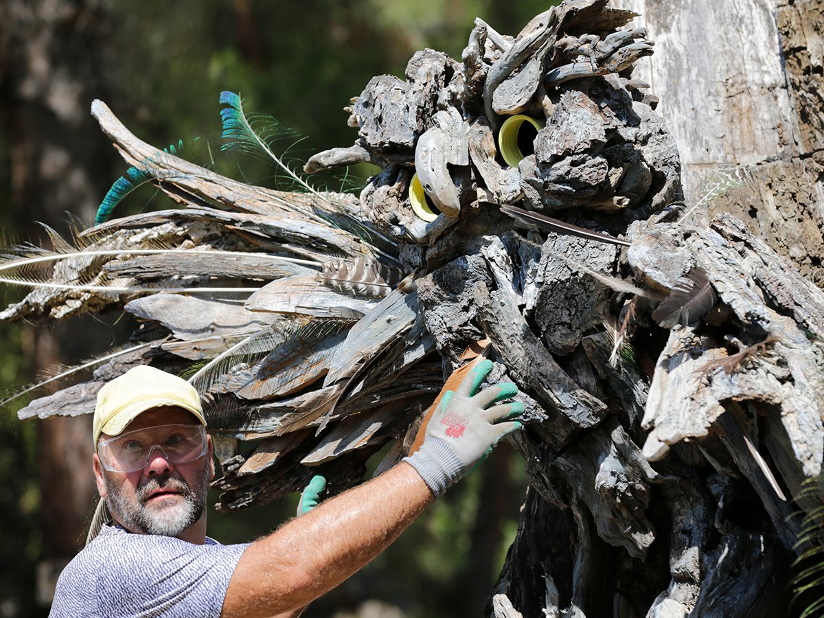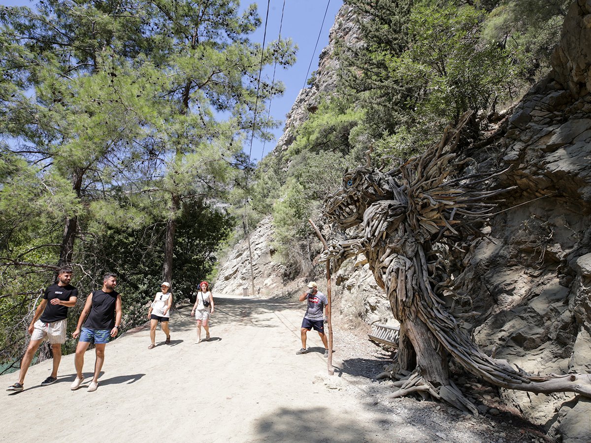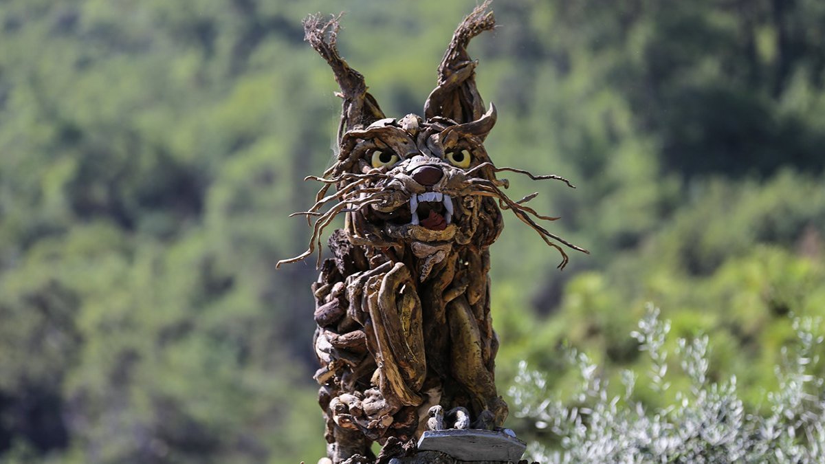 Rus heykeltıraş Mikhail Tchernega, tasarladığı heykel için Göynük Kanyonu'ndaki dere yatağına sel sularıyla taşınmış dal ve budakları topluyor. El arabasına yüklediği dalları atölyesine taşıyan Tchernega, kurumuş parçaları birleştirerek esere dönüştürüyor. Doğadan ilham alan Tchernega, merdiven yardımıyla çıktığı 4,5 metre yüksekliğindeki kurumuş ağaç kökünün üzerine 2,5 ay süren çalışmasıyla dağ keçisi ve baykuş heykelleri yaptı. Ağaç parçalarından 7 heykeli tamamlayarak, doğanın ve yaban hayatının önemini anlatmaya çalışan Tchernega'nın, kanyonun girişi ve yol güzergahına yerleştirdiği heykellere ziyaretçiler ilgi gösteriyor, fotoğraf çekiyor. Rus heykeltıraş, yerli ve yabancı turistlere heykeli nasıl yaptığını da anlatıyor. 5 yıldır Türkiye'de yaşayan Tchernega, eserlerini bölgede yetişen ağaçların parçalarını kullanarak yaptığını söyledi. Heykeli için hiçbir zaman ağaçtan dal kesilmediğini belirten Tchernega, "Ağaçtan düşen, suda sürüklenen atık ağaçları topluyorum, yaşayan ağaçlara hiç dokunmuyorum. Güzel şekiller buluyorum. Her parçayı toplamıyorum sadece işime yarayacak parçaları alıyorum. Bölgedeki ağaç dalları dışında hiçbir malzeme kullanmıyorum. Daha çok bölgede yaşayan yaban hayvanlarının heykellerini yapıyorum" dedi. "HEYKELLERİM KANYONU DAHA GÖRÜNÜR YAPIYOR" Tchernega, bir heykelin yapımının en az 2,5 ay sürdüğünü anlatarak, eserlerinin kanyonun ziyaretçilerine pozitif katkı sağladığını dile getirdi. Heykellerini kanyondaki yürüyüş yollarına yerleştirdiğini ve zaman zaman bakımını yaptığını kaydeden Tchernega, "Ziyaretçilerin çektiği heykel fotoğraflarında kanyon da çıkıyor. Güzel fotoğraflar sosyal medyayla dünyaya yayılmış oluyor. Heykellerim kanyonu daha görünür yapıyor. Ziyaretçilerin heykellerin başında mola verip, incelediğine şahit oluyorum" diye konuştu. Vaşak çalışmasını yeni tamamladığını ifade eden Tchernega, Göynük Kanyonu'na gelenlerin hem kanyonu hem de heykelleri görme imkanı bulduğunu kaydetti. Tchernega, ziyaretçilerin heykellere bakıp, mutlu olduğunu anlatarak, "Buranın doğal yapısı ziyaretçilerin ilgisini çekiyor. Doğadan çok etkileniyorum, tüm ilhamımı kanyondan alarak eserlerimi yapıyorum. Farklı ülkelerden gelenler burayı görüp mutlu oluyor. Çevre, yaban hayatı çok önemli" ifadelerini kullandı. (AA)