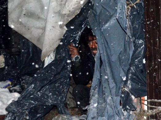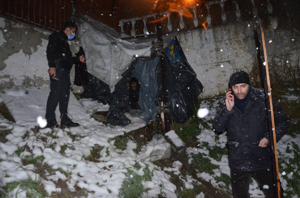 Avcılar'da Sosyal Yardımlaşma ve Dayanışma Vakfı ekiplerinin çalışmaları sırasında bir duvarın dibinde derme çatma bir çadırda bir kişinin kaldığı belirlendi.