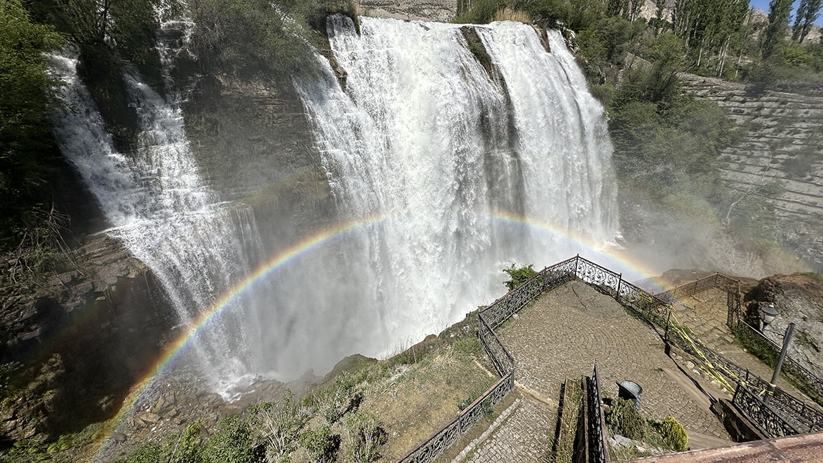 Dünyanın en yüksek 3'üncü şelalesi, havaların ısınmaya başladığı bugünlerde doğal güzelliği ve coşkun akan suyuyla misafirlerini bekliyor.