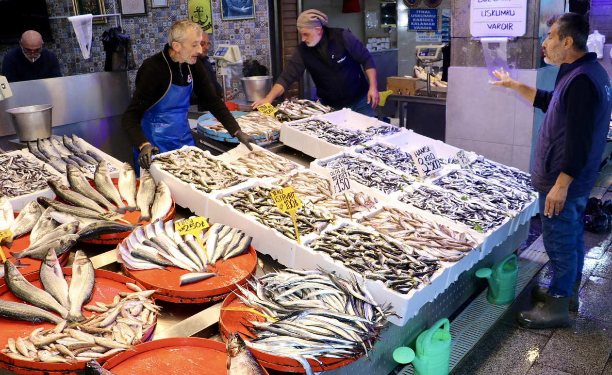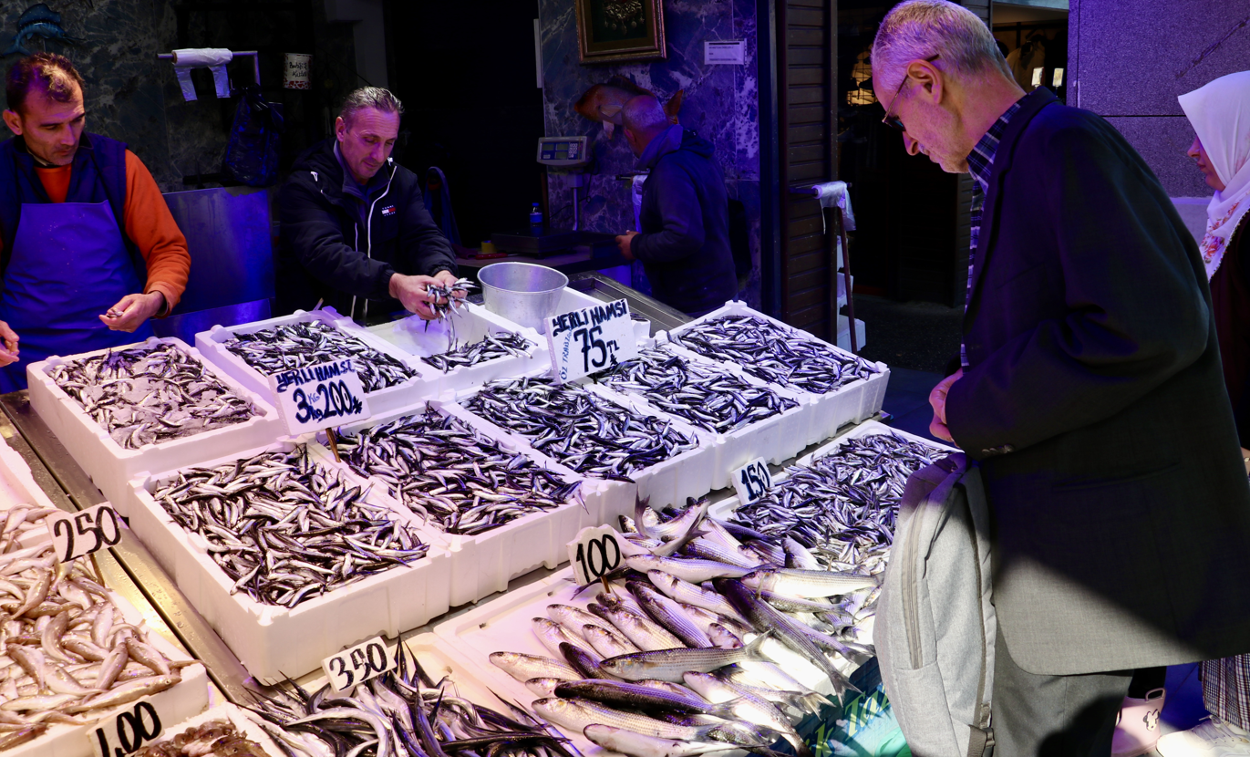 Öte yandan, yoğunluk yaşanan balıkçı pazarındaki birçok tezgahta hamsinin 3 kilogramı 200 liraya satılıyor.