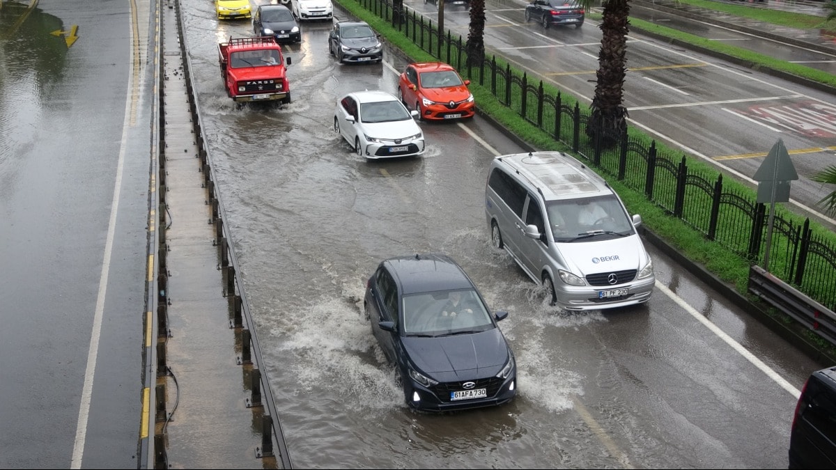 Karadeniz Sahil Yolu'nda kalan araçlar uzun kuyruklar oluşturdu. Pelitli, Havalimanı, Değirmendere ve Çömlekçi mevkisinde su birikintileri nedeniyle sürücü ve yayalar zor anlar yaşadı.