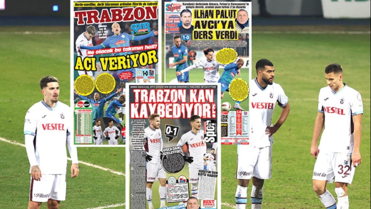Öte yandan Trabzon'da yayın yerel gazeteler de Trabzonspor'un hem kötü gidişatını hem de Çaykur Rizespor deplasmanında alınan mağlubiyeti farklı başlıklarla okuyucularına duyurdu. Yerel gazeteler bugünkü sayılarında şu başlıklara yer verdi: