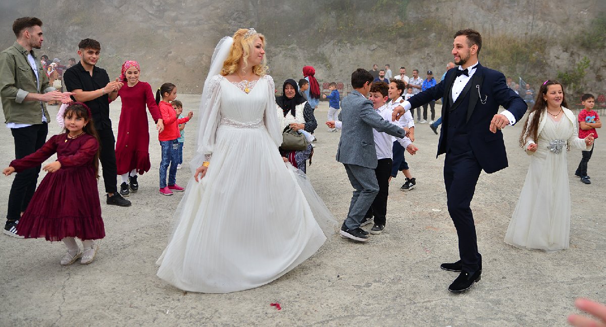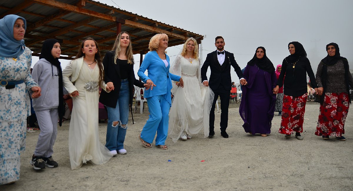 Kemençe eşliğinde horon oynanan düğüne, gelinin Ukrayna'daki annesi Nadiia Bolodymyr da katıldı.