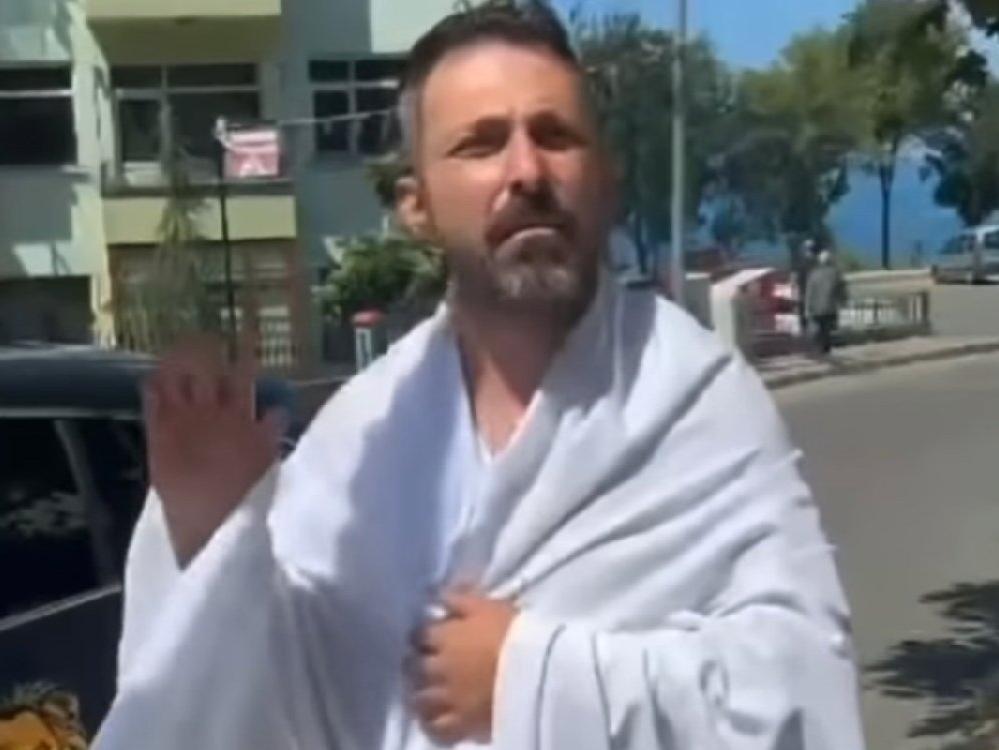 Trabzon’da Arap turistlerin daha fazla ilgi görmesinden yakınan Trabzonlu vatandaş, üzerine beyaz çarşaf sararak sokağa çıktı.