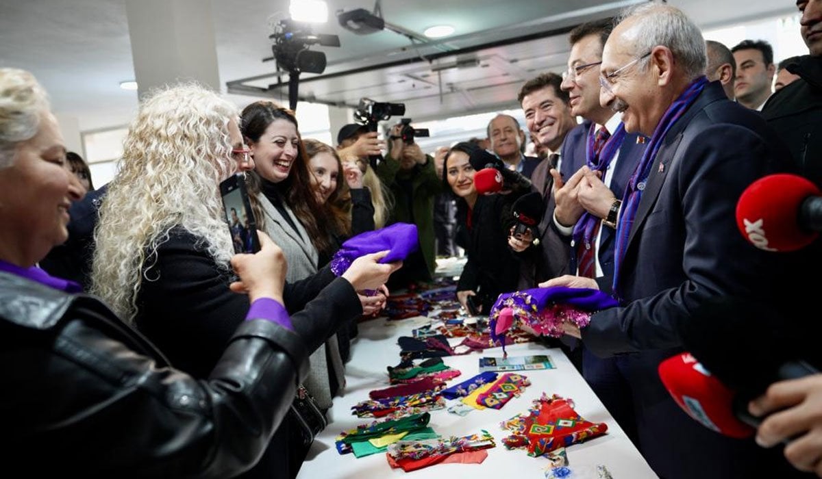 Kadınların el emeği ile ürettikleri ürünlerin sergilendiği stantları gezen Kemal Kılıçdaroğlu ile başörtülü bir kadın arasında dikkat çeken diyalog dikkat çekti.