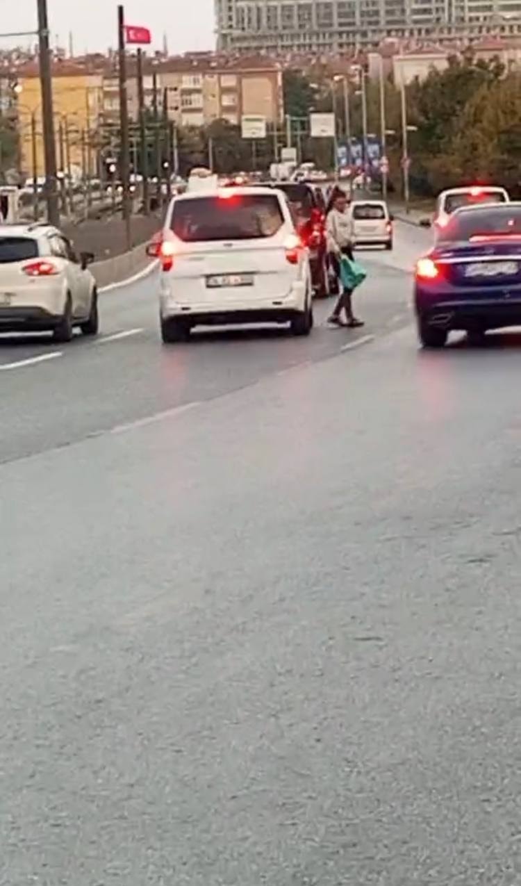 Olay anı, bir vatandaşın cep telefonu kamerasına yansıdı. Görüntülerde sürücülerin ani manevralarla olası kazayı önlemeye çalıştığı ve çevredeki vatandaşların kadına yardım ettiği görüldü.