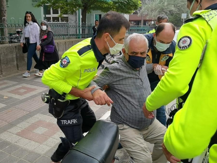 Uygulama sırasında plakasız motosiklet durduruldu. Yapılan incelemede, motosikletin "çekme belgeli" olduğu tespit edildi. Sürücü Cemalettin E'ye (53) bin 300 TL ceza kesildi. Ceza miktarını duyan sürücü, fenalık geçirdiğini söyleyerek yere oturdu.