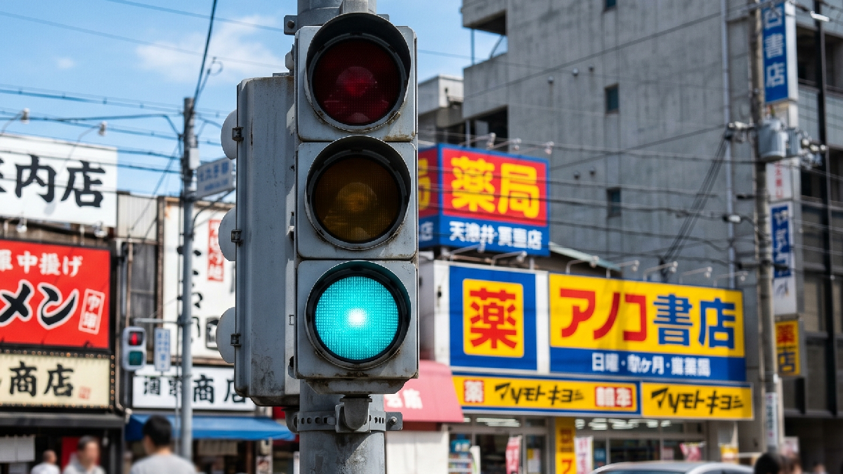 1960’lı yıllara kadar resmi belgelerde de "mavi" olarak geçen bu ışıklar, uluslararası havacılık ve trafik standartlarına uyum sağlamak adına bir dönem yeşile çevrilmeye çalışıldı. Ancak Japon halkı, "Mavi ışık yandı" demeye devam edince hükümet dâhiyane bir çözüme imza attı.