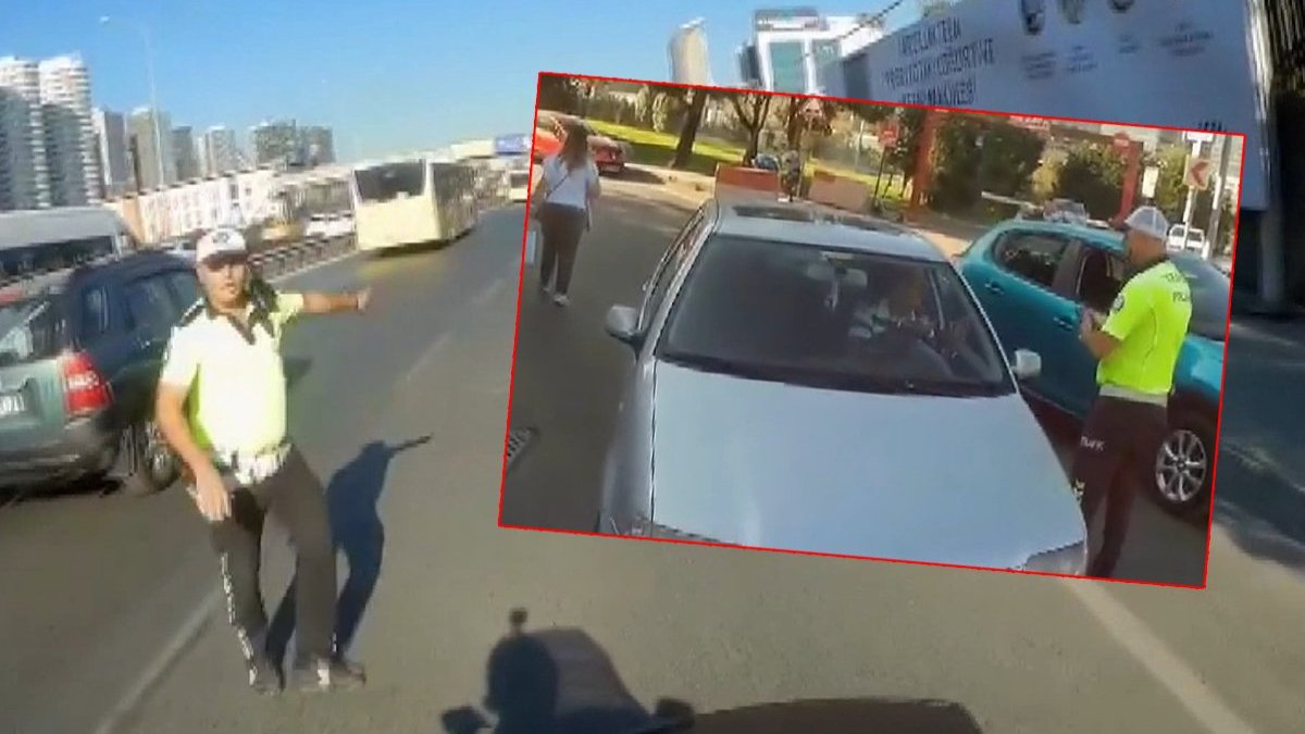 Uğur'un arkasına binen trafik polisi , şüpheli aracın takibini istedi. Ömer Uğur araca yakalayarak yolunu kesti.