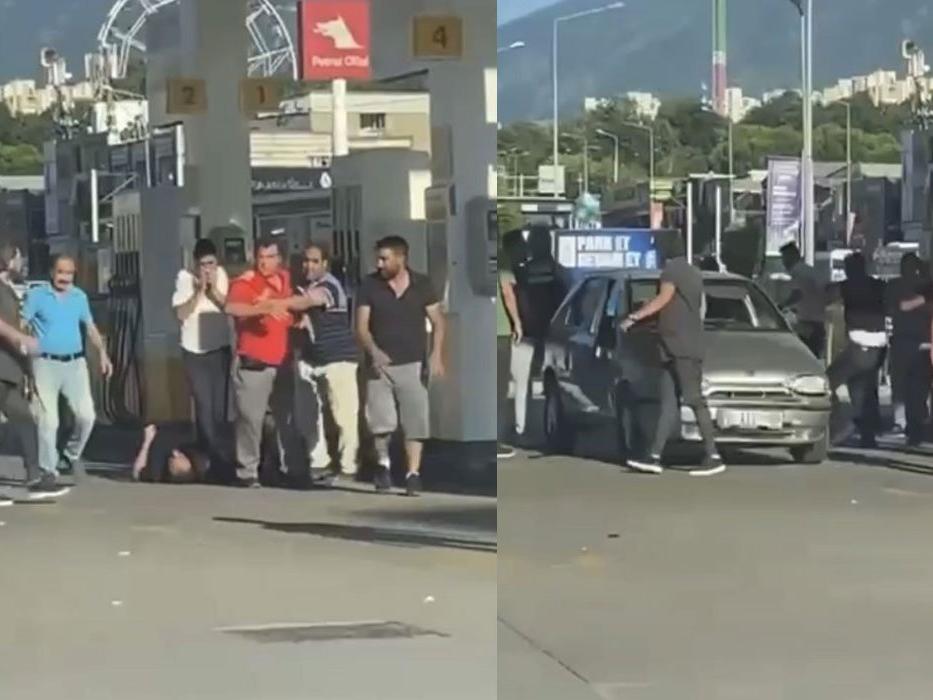 Birbirlerini trafikte korna ve selektör ile taciz eden sürücüler yol kenarında bulunan bir benzin istasyonuna girdi.