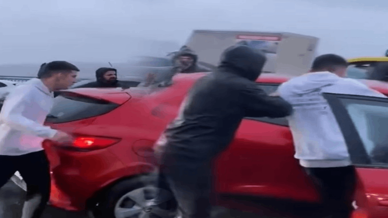 Unkapanı Köprüsü’nde seyir halinde olan 2 otomobilin sürücüsü arasında yol verme nedeniyle tartışma çıktı. Araçlarını durduran sürücüler arasındaki tartışma kısa sürede kavgaya dönüştü. Sürücülerden biri diğer aracın kapısını açıp, tartıştığı sürücüye tekme atttı. Saldırgan sürücünün yanındaki başka bir kişi ise otomobili tekmeledi. Vatandaşların araya girmesiyle kavga sona erdi.