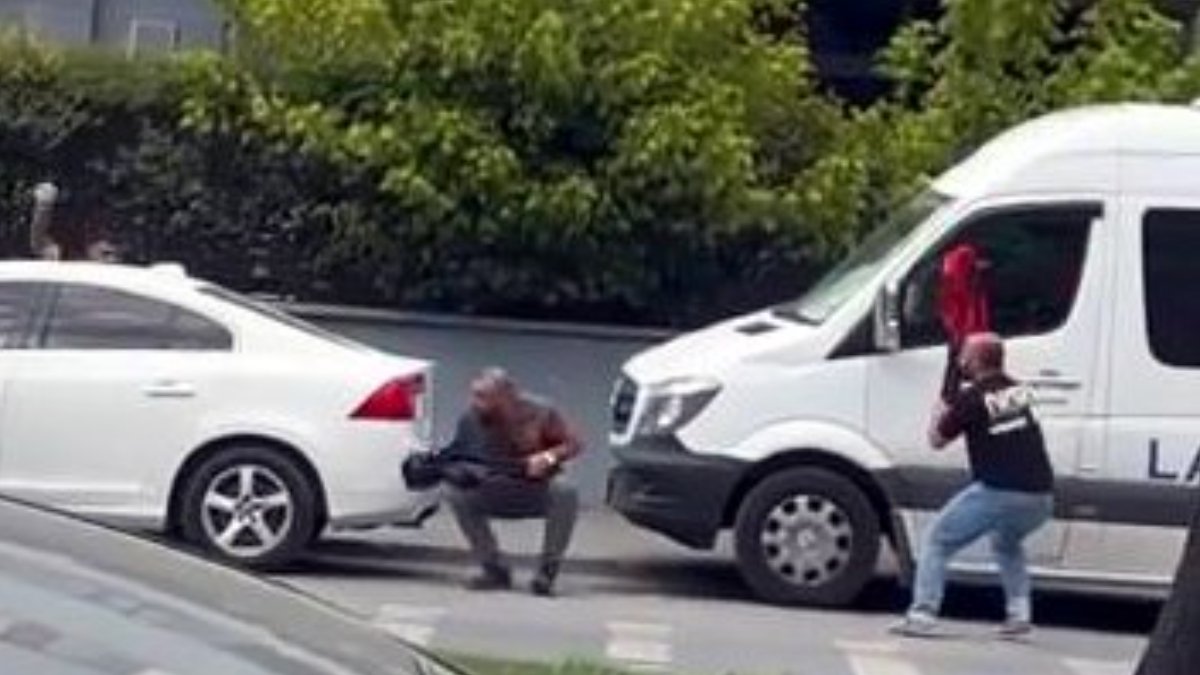 Diğer otomobildeki 2 kişi, şemsiyeyle saldıran sürücüden kaçmaya çalışsa da kavga bir süre devam etti. İki kişi öfkeli kişilerin elinden kaçarak kurtuldu. Çevredekiler o anları cep telefonu kamerasıyla kaydetti.