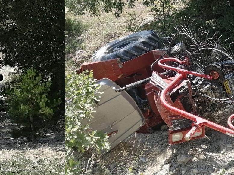 Dede Ramazan Ulu idaresindeki traktör tek çam mevkiinde virajı döndükten sonra yoldan çıkarak, yaklaşık 50 metrelik yamaçtan aşağı yuvarlandı.