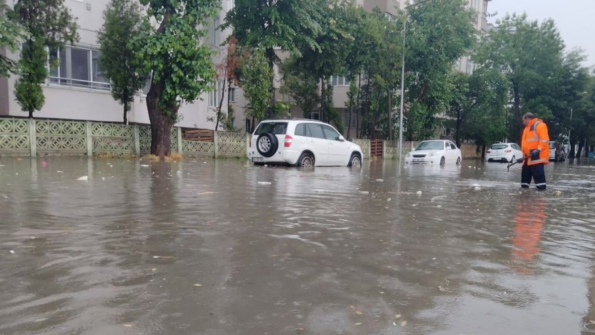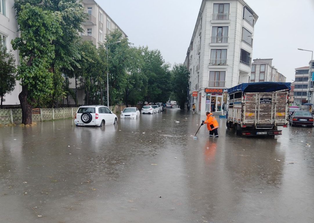 Edirne'de başlayan ve daha sonra sağanağa dönüşen yağış nedeniyle bazı cadde ve sokaklarda su birikti.