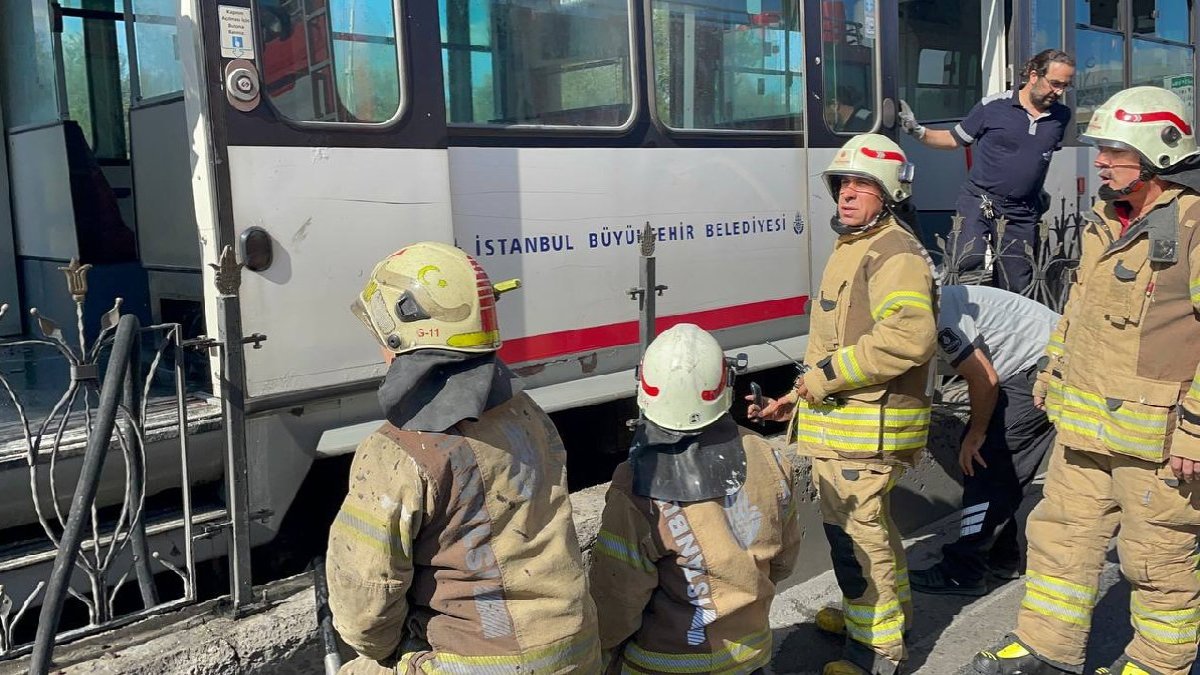 Topkapı'dan Mescid-i Selam yönüne seyir halindeki tramvayın arka kısmında henüz belirlenemeyen nedenle yangın çıktı.