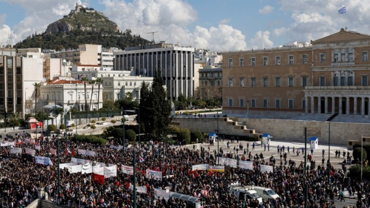 En az 57 kişinin hayatını kaybettiği tren kazasına karşı büyük gösterilere sahne olan Yunanistan’da bugün binlerce çalışan iş bıraktı.