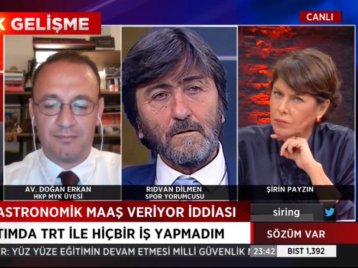 "Zahid Bey'le (Sobacı) Ankara'da buluştuk. Yüzde 100'le aramızda olmanızı istiyoruz dedi. Ben de yaparım ama ücretsiz yaparım dedim. Çünkü iki kez daha TRT'de para kazandığım için haftada bir 'Futbolun Zirvesi' isimli program yapmıştım. O zaman da para almam dedim ve almadım. O gün de almadım, şu anda da almadım. Bir tek sözleşmem dahi yok. Doğan beyler mahkemeye vermişler TRT'yi ve beni. Ben de vereceğim kendilerini iftira atıyorlar çünkü. TRT'nin benimle yaptığım bir sözleşmem varsa kendileri de açıklasın."Rıdvan Dilmen: TRT’den aylık 60 bin TL teklif yaptılar… Bu para girmeden önce kesinlikle para istemediğimi söylemedim… Başka mecralardan kazanacağımı söyledim.. @baristerkoglu, Şirin Payzın (@siring) ile #SözümVar’da@RidvanDilmen8 pic.twitter.com/SY4MMCSDGo