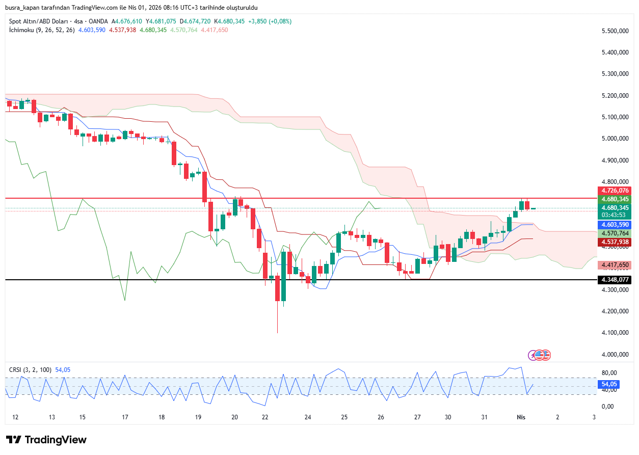 Ons altın dün gece seansında 4 bin 726 dolara yükseldi. Bugün sabah seansında 08.06'da 4 bin 679 dolara hareketleniyor.