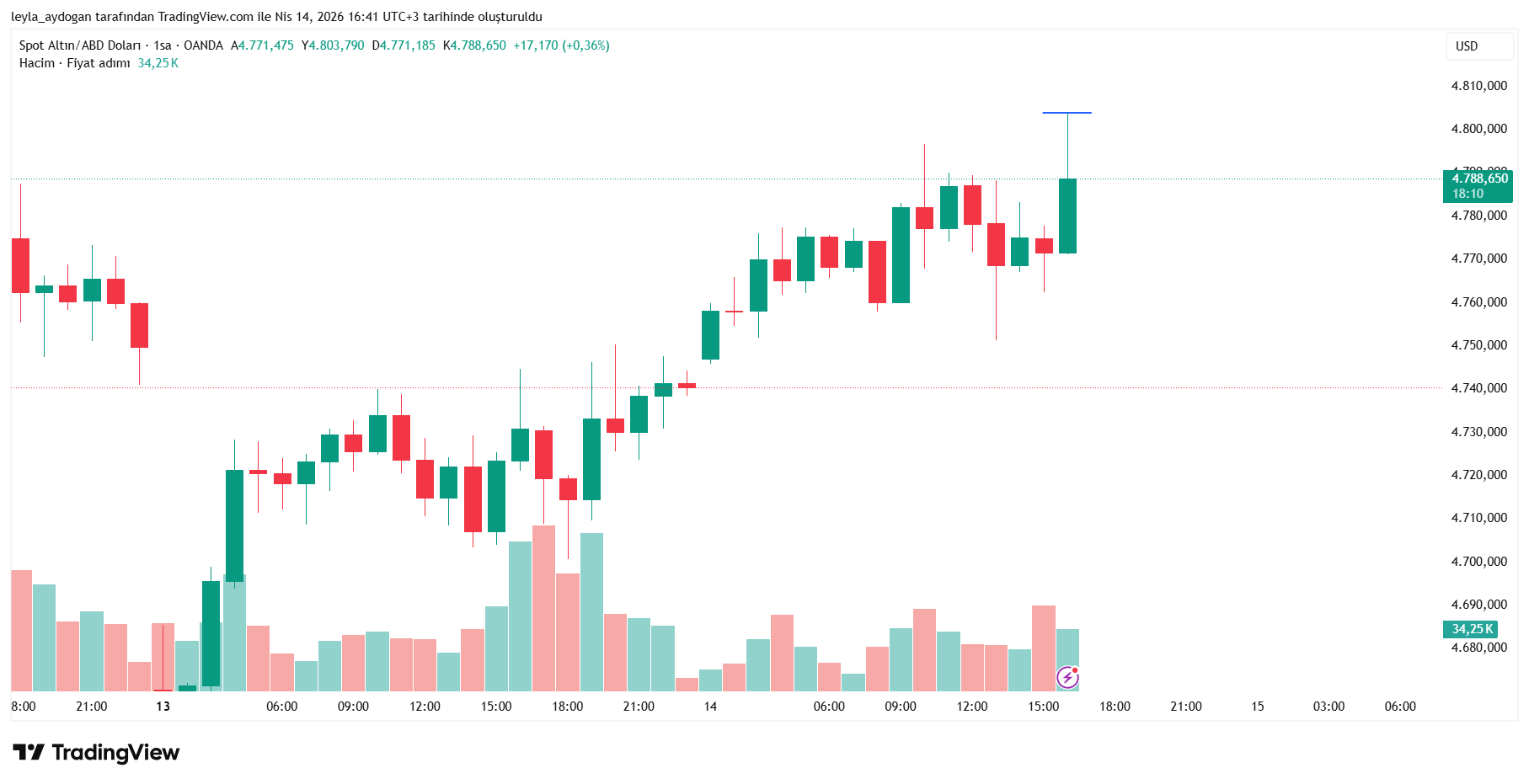 Altının onsu, sabah saatlerinde 4.768,19 dolardan başladı açıklamanın ardından 4.803 doları test etti. TSİ 16.40 itibarıyla 4.789 dolarda bulunuyor.