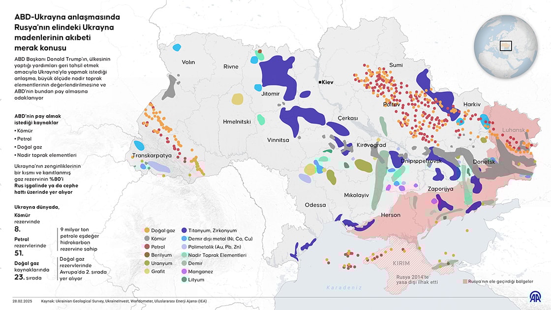 Ancak ABD'nin taleplerine ve anlaşma içeriklerine ilişkin sızıntılar, nadir toprak elementleri dışında kömür, petrol ve doğal gaz gibi hidrokarbon kaynaklarının da kapsama alınmak istediğini gösteriyor.