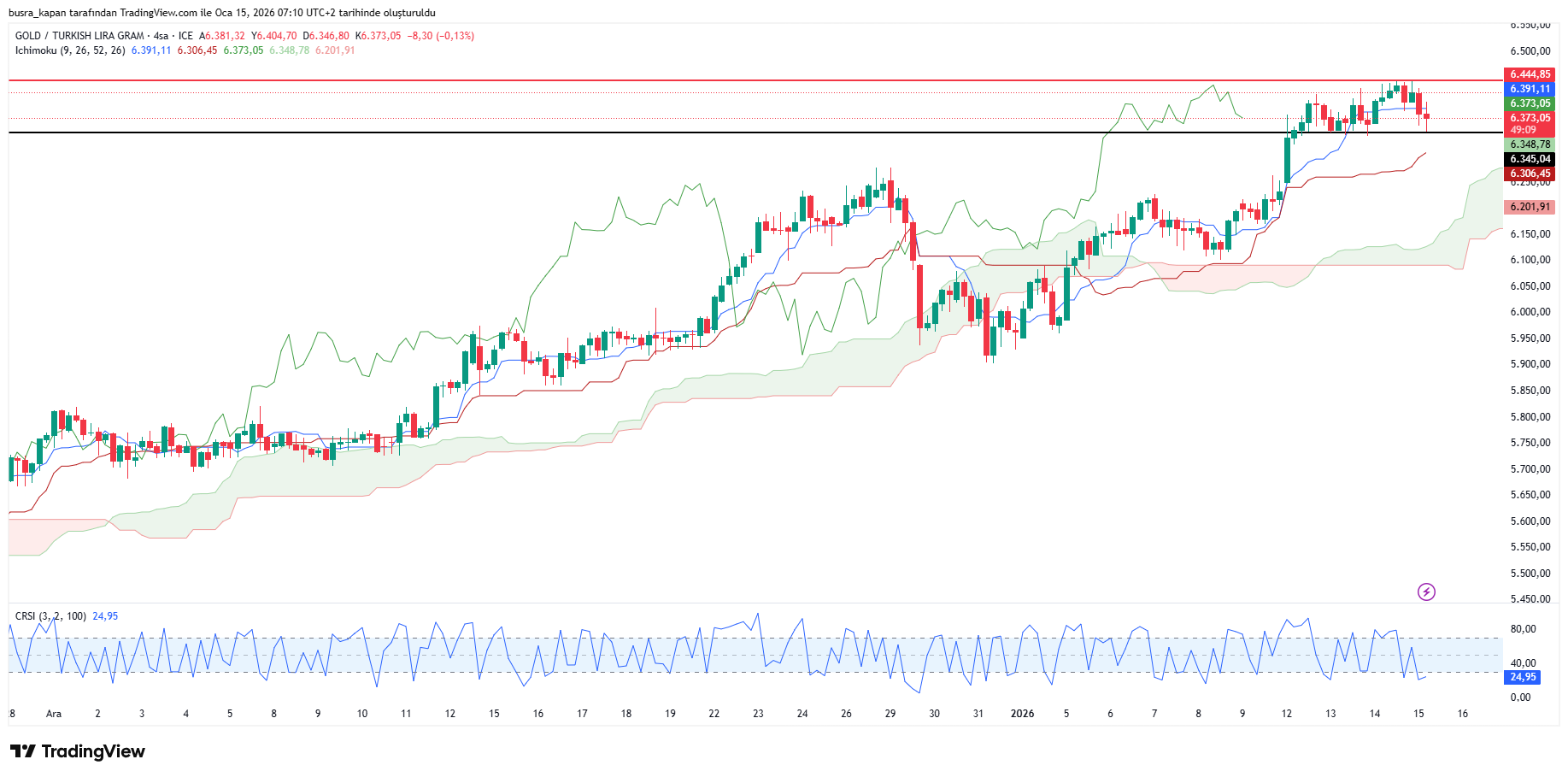 Gram altın, dolar/TL kurunda görülen yukarı yönlü seyir ve ons altındaki kısmi düşüşlerin etkisiyle aşağı yönlü eğilim sergiliyor. Gram altın sabah seansında 08.20'de 6 bin 370 dolarda bulunuyor.