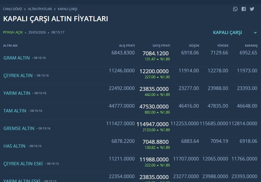 GRAM ALTIN 7 BİN LİRAYI AŞTI