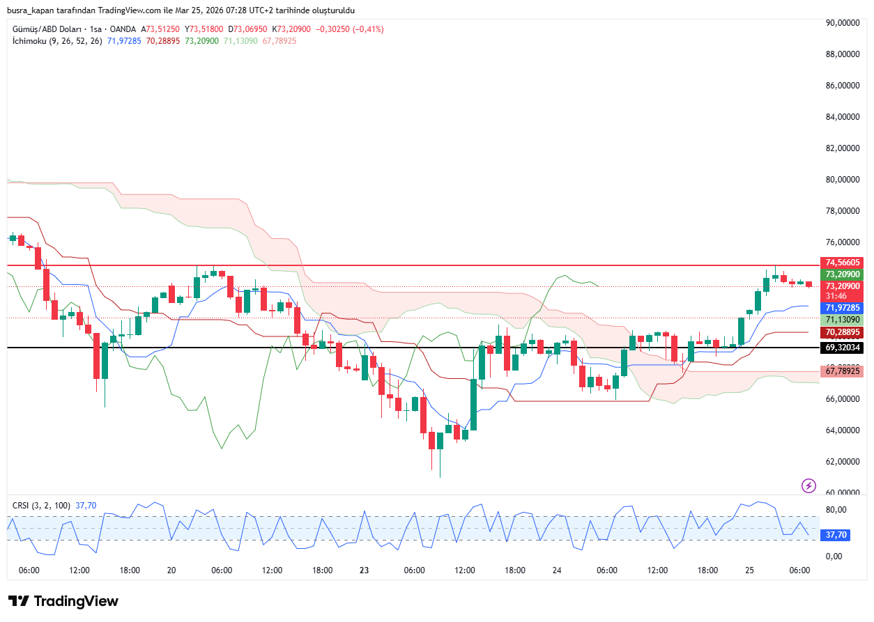 Gümüş fiyatları da gelen haberler sonrasında yükselişe geçti. Ons gümüş dün gece 69,32 dolardan tepki alımı başlatarak yüzde 7'den fazla yükseldi. Ons gümüş bugün sabah seansında 07.58'de 74,56 dolarda bulunuyor.