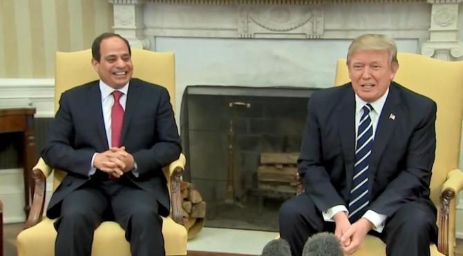 ABD Başkanı Donald Trump, Mısır Devlet Başkanı Abdülfettah Sisi ile Beyaz Saray'da görüştü. Trump, görüşmenin ardından basın mensuplarına Sisi'den övgüyle söz etti.