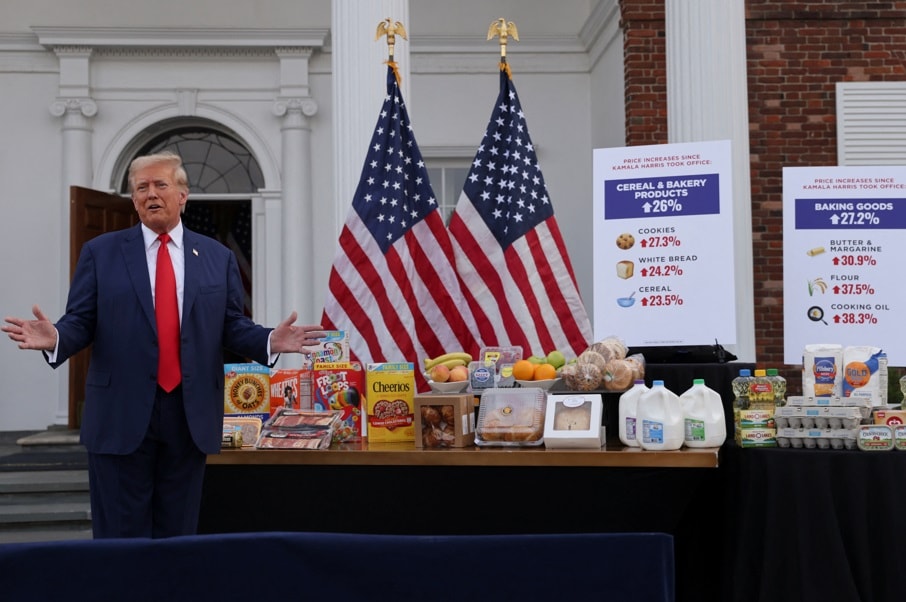 ABD'de 5 Kasım'daki başkanlık seçimleri için yarış giderek sertleşirken Cumhuriyetçilerin adayı eski Başkan Donald Trump, son basın toplantısını market ürünleri eşliğinde verdi.