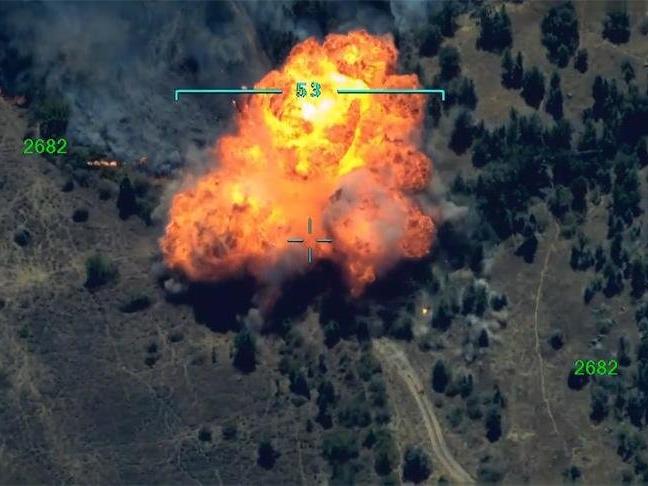 Türk Silahlı Kuvvetlerince, dün Irak'ın kuzeyindeki Zap bölgesinde imha edilen mühimmat ikmal aracının vurulma anı paylaşıldı.