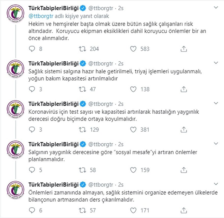 TTB'nin sosyal medya hesabından yapılan açıklamada şu ifadeler kullanıldı: