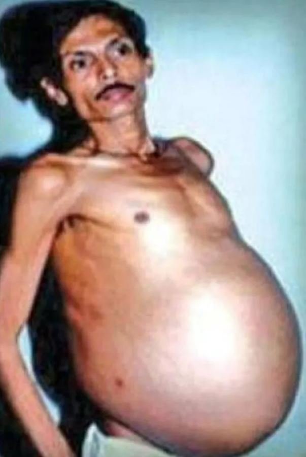 Ancak 1999'da, şişkinlik diyaframına baskı yaptığında ve nefes almasını zorlaştırdığında, sonunda Mumbai'de bir hastaneye kaldırıldı. Doktorlar ilk başta adamın karnında bir tümör olduğunu varsaydı.