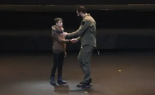'Ümran bebek' olarak ünlenen fotoğrafın ardından 13 yaşında bir çocuk olarak kutlama etkinliklerine katılan Dakneş, sahneye çıkarak zafer konuşması yaptı.