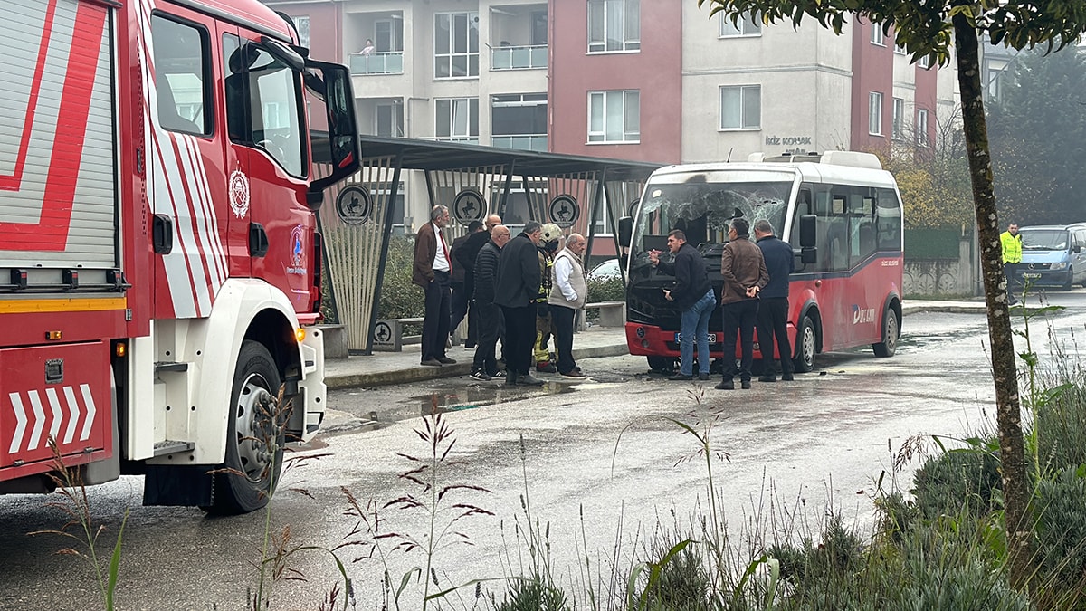 Düzce’de özel halk midibüsünde çıkan yangın, itfaiye ekipleri ve vatandaşların müdahalesiyle kontrol altına alındı.