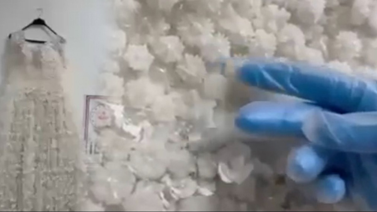 Gelinliğe ilmek ilmek uyuşturucu işlemişler!
